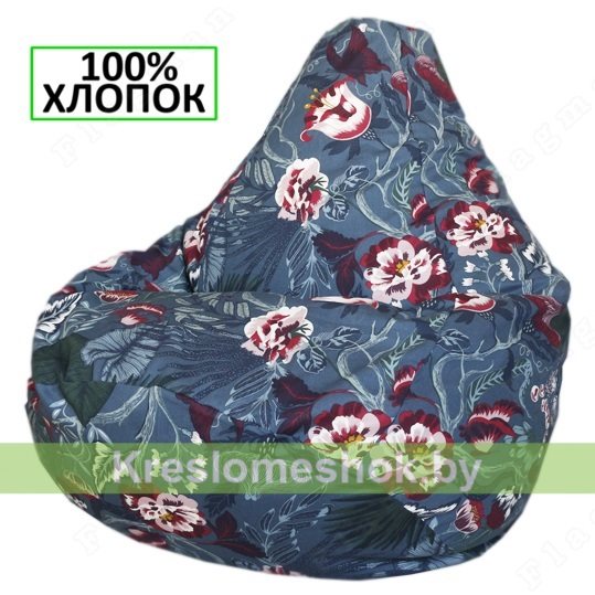Внешний чехол кресла мешка изготовлен из 100% хлопоковой ткани. Хлопковая ткань может быть как однотонной так и с ярким рисунком. Кресла мешки из хлопка пользуются большим спросом у любителей натуральных тканей и ярких принтов. Хлопковые ткани придают изделию лёгкость, они просты в обработке, воздухопроницаемые и очень прочные.