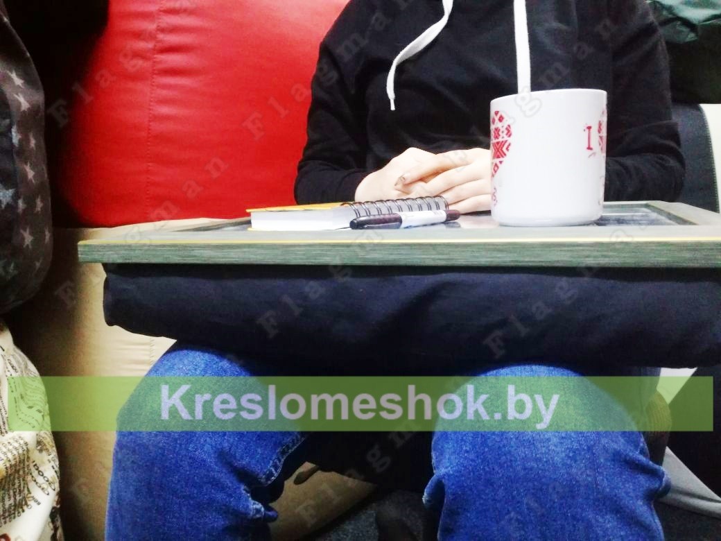 Подушка подноса наполнена гранулами пенополистирола, наполнитель обеспечивает устойчивое положение подноса фактически на любой поверхности.
